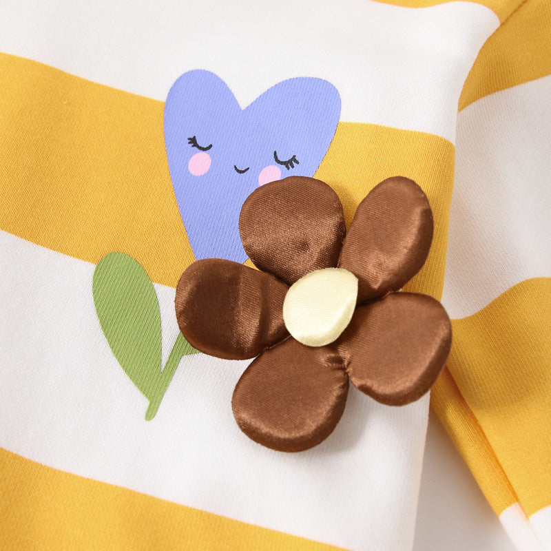 Autumn Arrival Kids Girls Flowers and Striped Pattern Long Sleeves