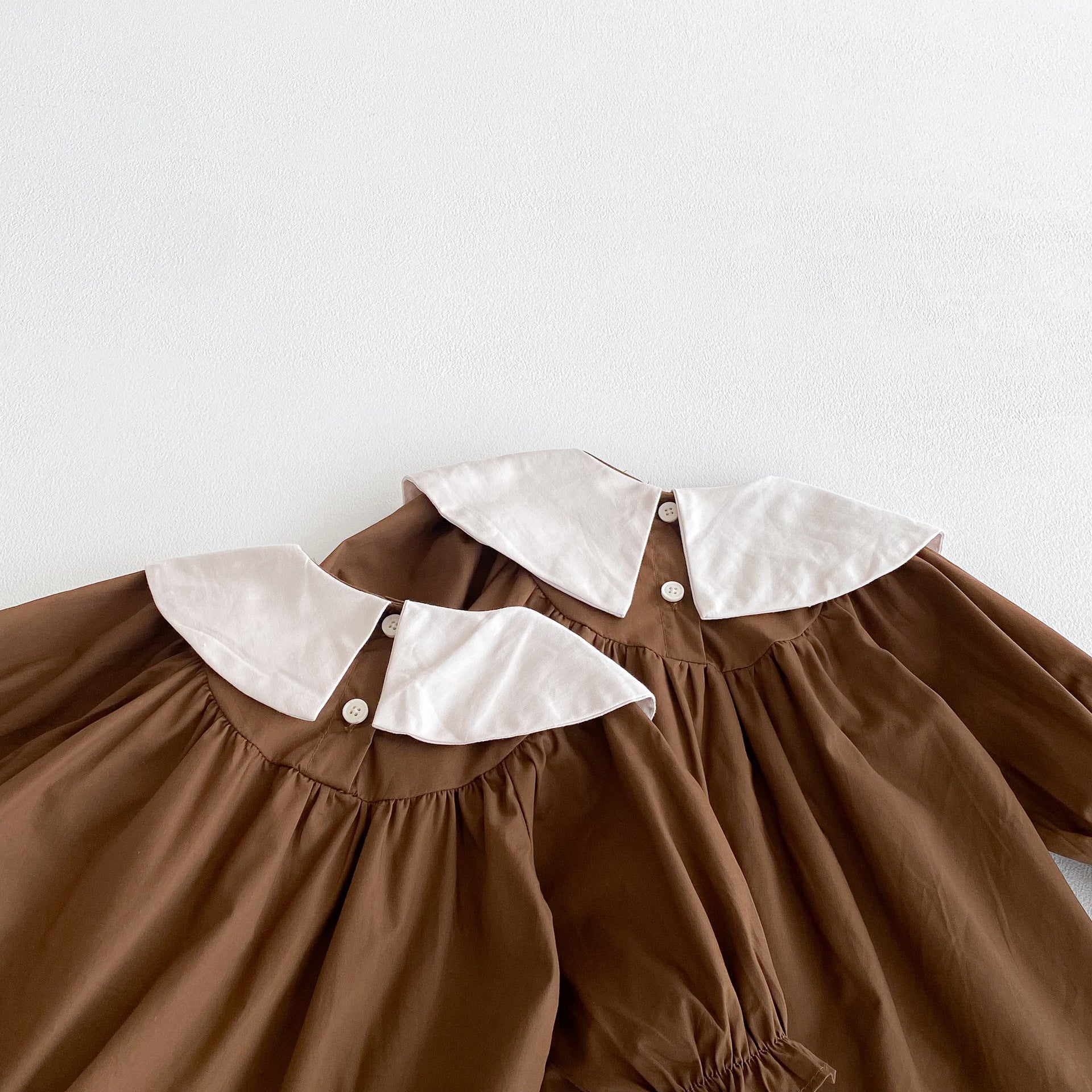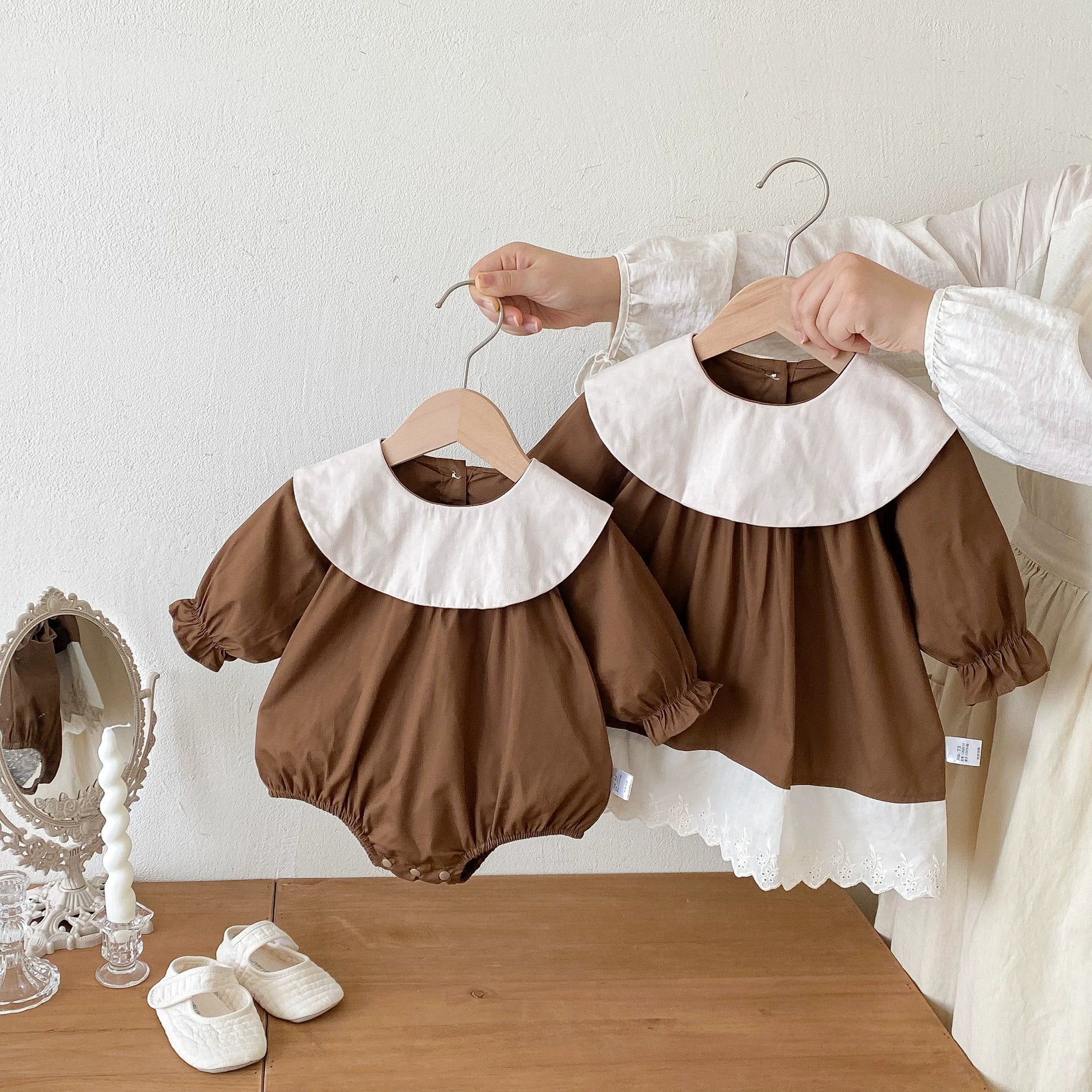 👗 Coordinated Sister Set – Includes a long-sleeved onesie and matching dress.
