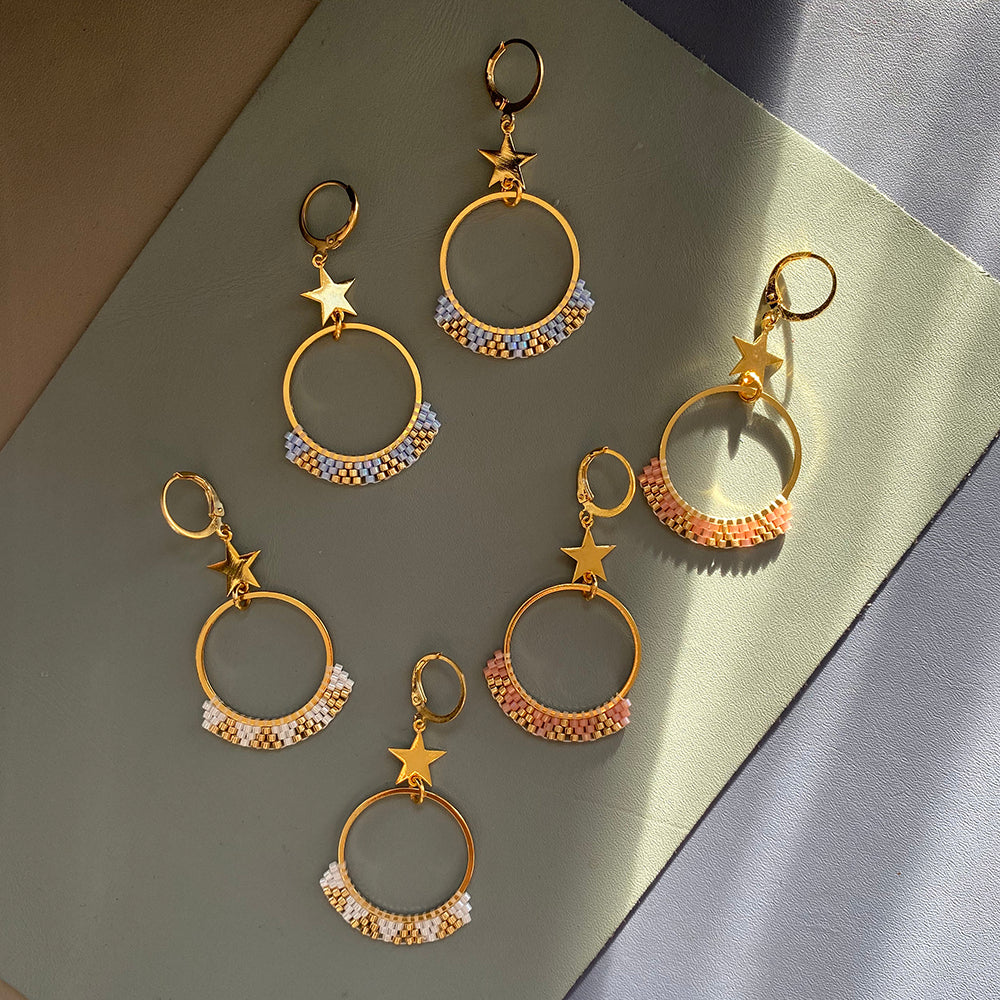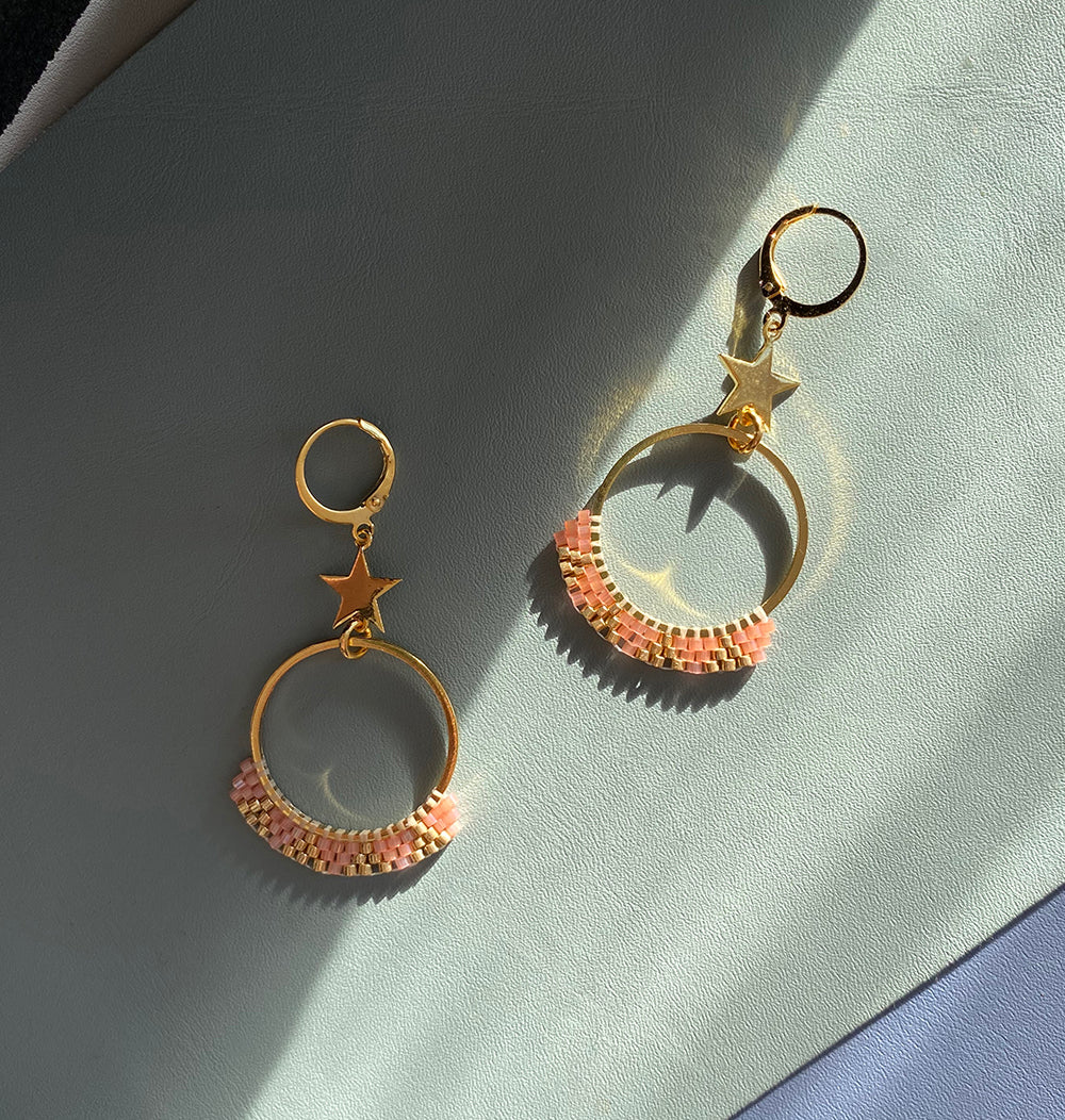The most satisfyingly luxe pastels combined with shiny 24 carat gold plated hoops. These earrings will look pastel perfection in the winter and enhance ALLL the golden sunkissed skin in the summer. Hoorah.