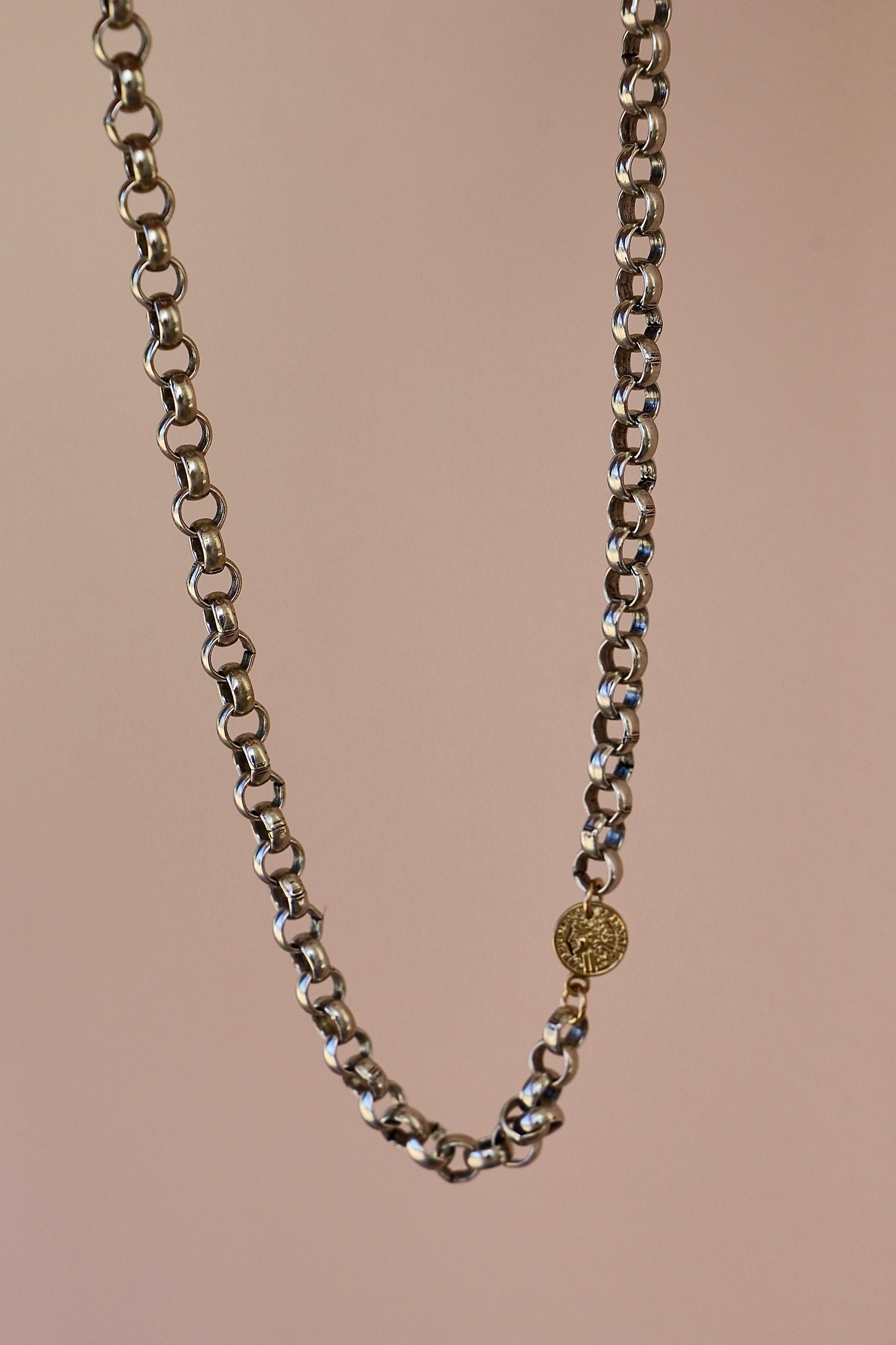 The Margot Chain is your new go to necklace! Made of Antique silver chain and gold clasp endings, it can go with anything! Pair with the matching bracelet for a complete look.