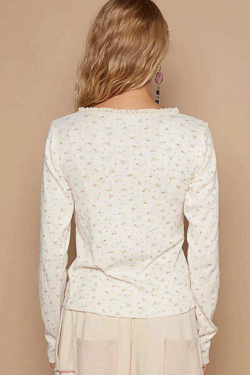 This floral V-neck long sleeve t-shirt combines a romantic print with a flattering neckline for a feminine and stylish look. The long sleeves provide coverage and warmth, making it perfect for transitioning between seasons. Pair this top with your favorite jeans or skirts for an effortlessly chic outfit. Embrace floral charm and timeless elegance with this versatile t-shirt.