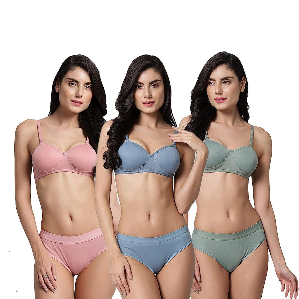 Add a splash of bold color to your lingerie collection with our Women’s Cotton Half Cup Padded Bra and Panty Sets, now available in a vibrant combo pack of 3. Each set features a wire-free bra designed for ultimate comfort, with half-padded cups that provide a natural lift and smooth shape. The soft, breathable cotton fabric ensures all-day comfort, while the bold colors make a stylish statement. The matching panties offer bikini-style coverage, blending comfort with a flattering fit. Ideal for ladies and girls alike, this versatile lingerie set is perfect for everyday wear or special occasions. Enjoy the combination of practicality and style with this must-have innerwear pack.