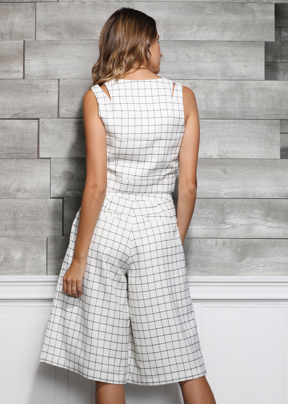Women's Sleeveless Slit Blouse In Square Jacquard